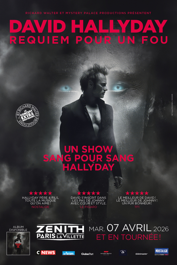 Avec sa tournée triomphale Requiem pour un fou, David Hallyday offre tout simplement l’événement scénique de l’année. On pourra le retrouver à Paris le mardi 07 avril 2026 au Zénith et en tournée dans toute la France.