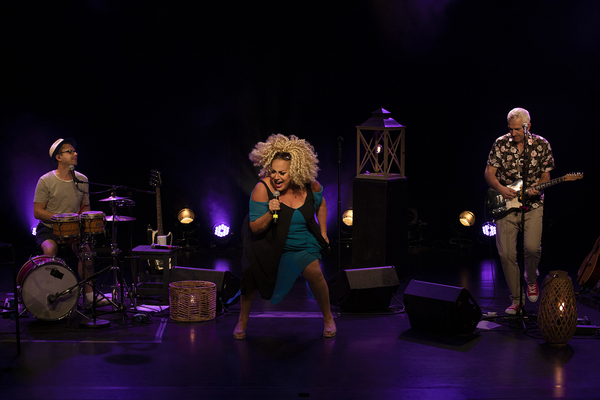 Avec Sébastien Buffet (batterie, percussions, programmations, guitare, bruitages, chœurs) et Philippe Begin (guitares et chœurs), sans oublier Pupuce, sa licorne magique, Marianne James est éblouissante dans ce spectacle intergénérationnel.